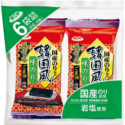 HAMAOTOMEKankoku-fu ajitsuke nori 6P This nori is made with seaweed grown in Japan, seasoned with sesame oil and sea salt, to provide a Korean flavor. It...