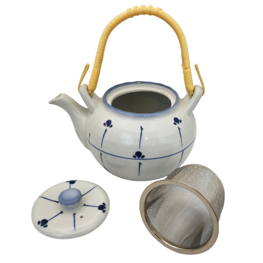 THE TOICHI染付土瓶 網付 藍色に染められた伝統的な日本スタイルの土瓶で、茶こしが付いています。 追加情報 材質:陶器 寸法:18 x 20 cm 容量:720ml 原産国:日本
